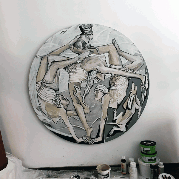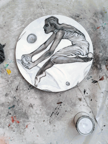 Palaissommer 2024 Actionpainting auf dem Neumarkt vor der Frauenkirche mit dem Musiker PC nackt